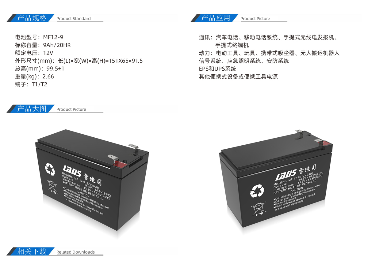 雷迪司MF12-9 12V 9AH閥控密封式鉛酸免維護(hù)蓄電池